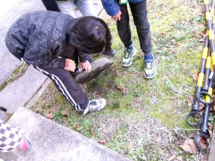冬の間、植物や動物はどんな様子なのだろう?中庭に行って、探していました。「岩の下に虫がいるかな?」「虫は卵で冬を越すのかな?」「これ菜の花?」いろいろと考えながら、観察していました。