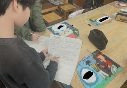 作品も完成したので,みんなで鑑賞しました。それぞれ工夫したところを見つけ合っていました!