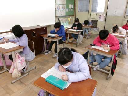 今までの学習の成果を発揮できるよう、がんばって問題に取り組んでいました。