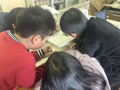 エプロンづくりが始まりました。まずはミシンの使い方から。今日は下糸の巻き方,下糸のセットの仕方を動画を見て確認しながらやってみました。