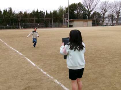 自分のすてきなところを撮影して、紹介するそうです。走ったり、なわとびを跳んだり、ボールを投げたり・・・それぞれが思い思いのシーンを撮影していました。