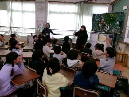 英語で動物を言う表現に慣れ親しんでいました。ALTの先生と楽しそうに学習していました。