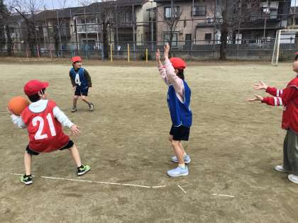 2年生になってから2回目のパスゲームが始まりました。1回目とはまたチームが変わり、1回目のときよりレベルアップしようという目標のもと、チームで作戦会議をしたり、パスの仕方を練習したりしながら、試合にも取り組んでいます。