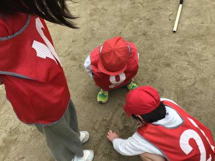 中には、コートを地面に書きながら、自分たちの動きを確認するチームもありました。