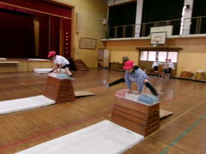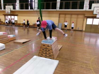 体育は「とび箱」の単元に入りました。6段飛べてガッツポーズ!楽しそうに運動していました。