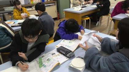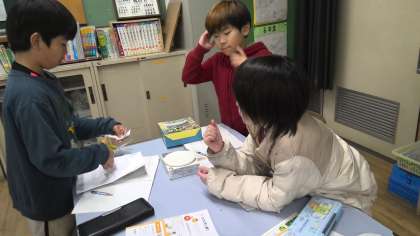 粘土や紙を色々な形に変えて,重さを量っていました。