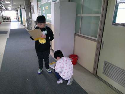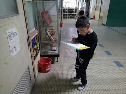今日は校内の防火バケツの場所を調べました。
