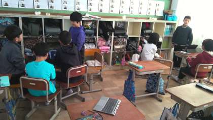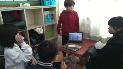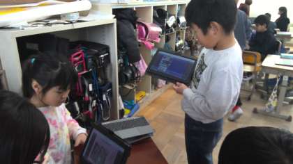 タブレットを使ってメモを書いたり,写真を見せたりしながら工夫して話しました。