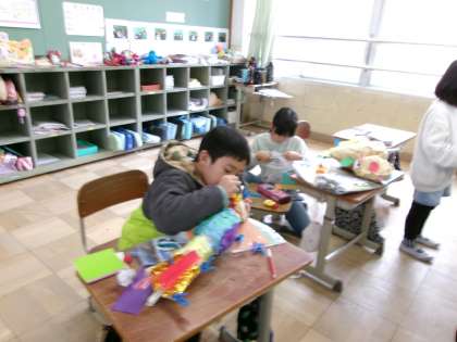 作品がどんどんできあがっています。「先生。見て!!」と笑顔で作品の紹介をしてくれました。