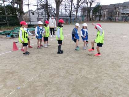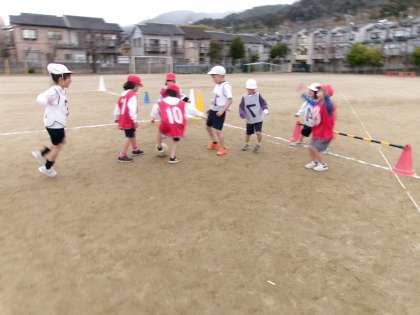 金曜日、寒くて時折、霧のような雨が降っていましたが、元気にゲームを楽しんでいました。「全然、寒くなかった!」と話している子もいました。