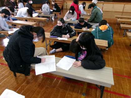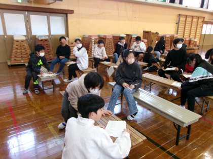 卒業証書授与式の座席の準備をした後は、巣立ちの言葉の担当決めをしました。いよいよですね。