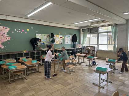 掃除時間に1年生の教室に行きました。テキパキ動いて、1年生の担任の先生にも褒められていました♪