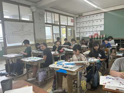 授業参観でもお見せした音の絵。今日は実際に音を録音しに行って,その音を絵の具で表しました。