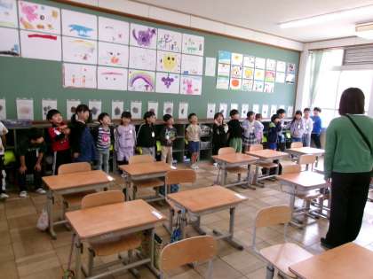 背の順で並んでいました。「しゃべらない」というルールをたして、楽しそうに活動していました。