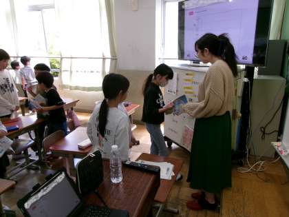 ALTの先生といっしょに、体調を伝えあう表現に慣れ親しんでいました。
