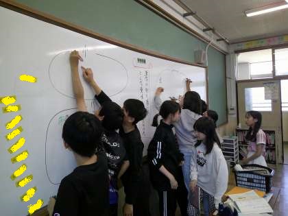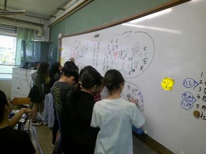 球・救・求で同じ読み方して共通する字を見つけました。そこから漢字辞典やタブレットを使って、色々な部首の漢字を集め、部首の理由を考えていました♪