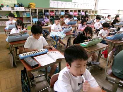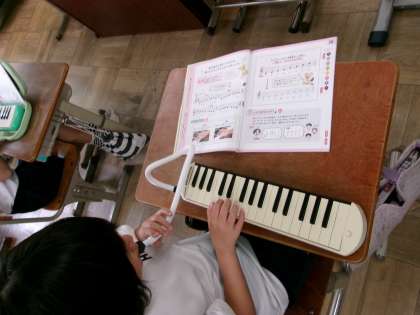 3年生では「音階」について学習します。音の高さに気をつけながら、鍵盤ハーモニカを弾いていました。