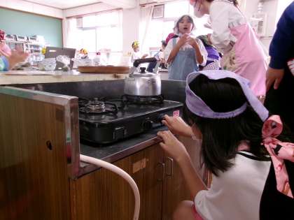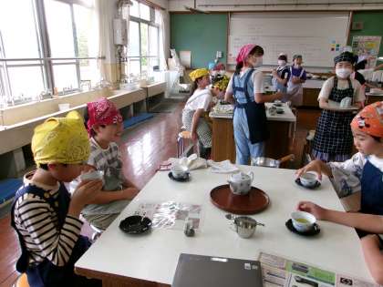 この前にお知らせしたクラスとは別のクラスも調理実習をしていました。「おいしい!」といいながらお茶を味わっていました。