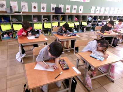 ひらがなの学習も進んできた1年生。書き順に気をつけて、自分の名前を丁寧に書いていました。