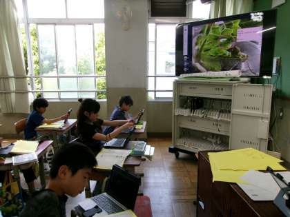 チョウのたまごを観察してカードにまとめていました。特徴をよくとらえていました。