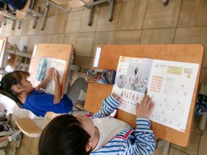 算数の学習の様子です。いす取りゲームもしながら、数の分解について学んでいました。