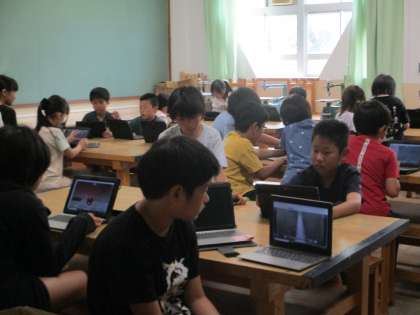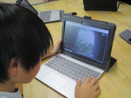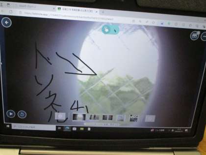 学校のあちこちをタブレットで写真に撮りました。ちょっとしたよごれや傷が写真に撮ると別の物に見えてきた・・・!みんなで撮った写真を見合いっこして楽しんでいました。