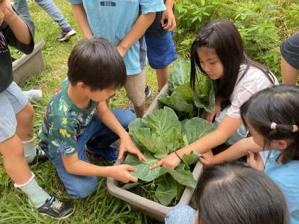 放課後、中庭のキャベツを見ると、またまた卵を発見しました。