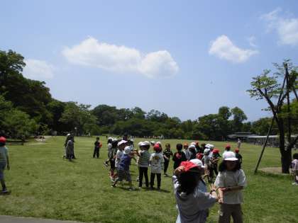 食べた後は、芝生で遊んだり、木陰で休憩したりしていました。