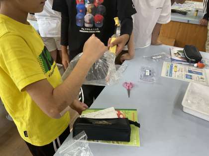 呼吸してはいた空気の中にはどのような成分が含まれているのか,実験して確かめました。