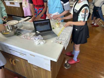6年生はじめての調理実習でした。とってもスムーズにできていました。