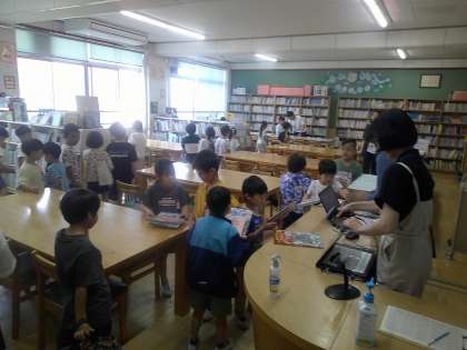 一列できれいに並んで歩くことができてきたので、次から学校のルールの右側通行で図書室に向かっていました。どんどん学校のルールを覚えていきましょう♪