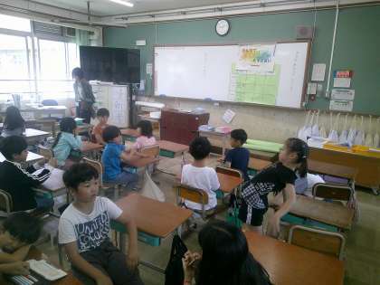 1組は学級目標に向けてどんな行動をすればよいかを話し合っていました。2組では、タブレットを使って挿絵を並び替えていました♪