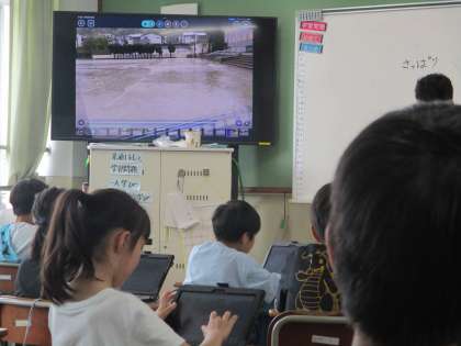 日野小学校の雨の日の運動場の様子を見て・・・・。あれ?なんだか不思議なことを発見!場所によって様子が違う?