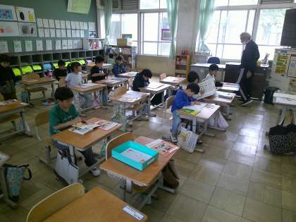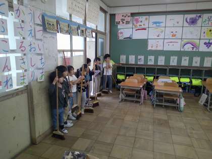 1組は視力検査の後教室で静かに読書していました。2組は、そうじを極めようと声を掛け合いながら取り組んでいました♪