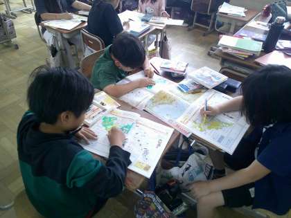 社会の学習では、友達と協力して調べていました。イイ感じ♪
