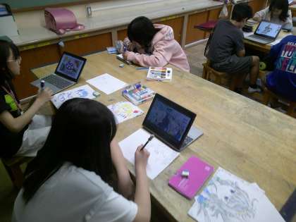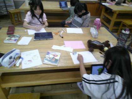 部活Aのアートでは下敷きを作っていました。バレー部はサーブ練習を一生懸命していました。頑張れがんばれ♪