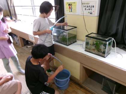 実験器具の話を聞いた後は、実際にメダカの観察や世話をしました。