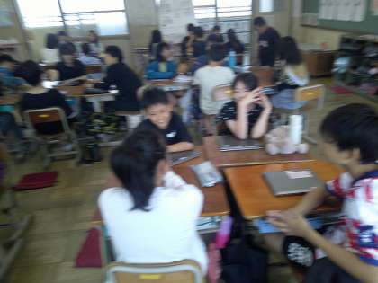 朝読書の時間にトークタイムを行いました。それぞれお題が分からないものを話をしながら当てていくというものでした。大盛り上がりでした♪