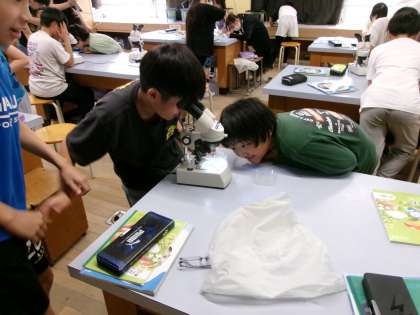 双眼実体顕微鏡を使って、メダカを見ました。「かわいい!!」という声が理科室に響いていました。