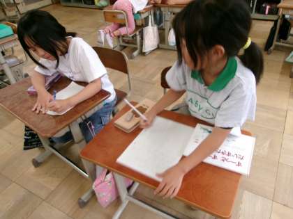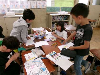 係活動をがんばっている様子です。友だちの意見を聞きながら、進めていました。
