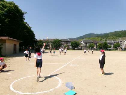 昨日、ソフトボール投げをしました。いい記録が出ると歓声が上がる良い雰囲気で計測していました。