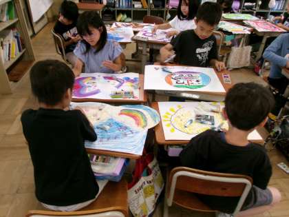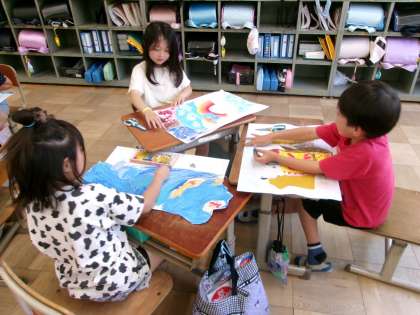 図画工作の作品の仕上げに取り組んでいました。すてきな作品が出来上がっていました。