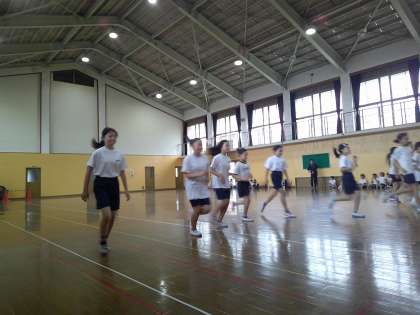 シャトルランを行いました。修学旅行明け、プール清掃明けでもベストをつくして頑張っていました♪