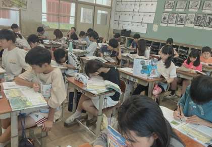 大阪にある大きなカギ穴の形をしたもの。これはいったい何なのか、じっくり調べました。調べるときは静かに、話すときは積極的に。メリハリがよくできています!