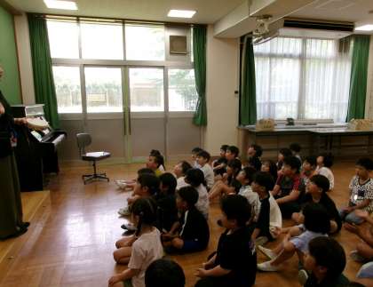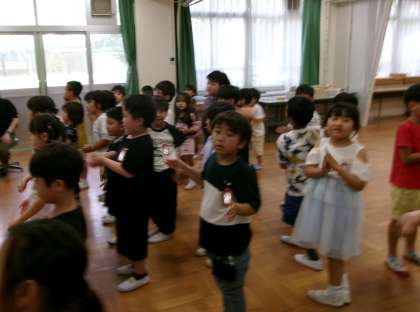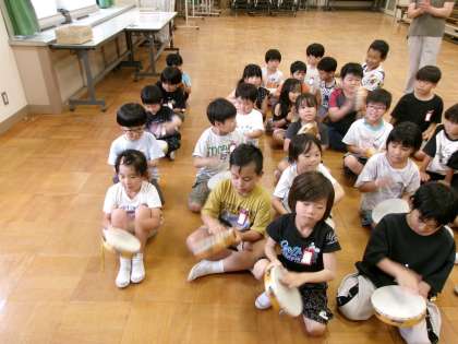 歌いながら、手拍子を打ったり、先生に教えてもらって、タンブリンを打ったりしていました。