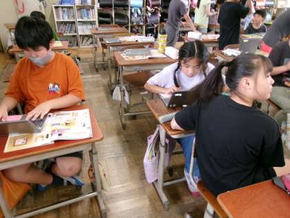 図画工作の学習の様子です。校内で写真を撮って、その画像を加工していました。どんな風になるか楽しみですね。