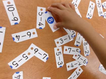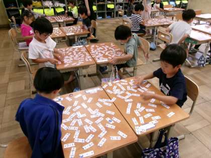 計算カードでカードゲームをしていました。「かるた」みたいにめくりながら、楽しんでいました。