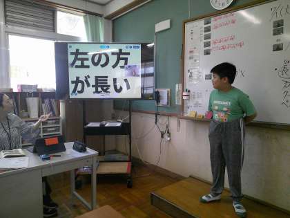 次の時間からは、見て長さを比べるだけでなく、定規を使って長さを比べてみます。