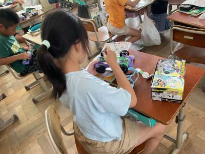 「電気のはたらき」の学習も今日で終わり。今日は,学習のまとめとして,これまでの学習を生かして車を走らせたり,扇風機を回したり・・・。直列や並列のつなぎ方を色々ためしながら,楽しんでいました。