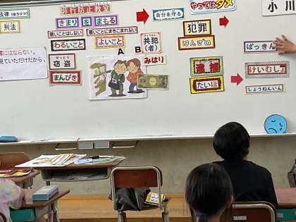 友だち同士の間でよくある「やられたからやりかえした」・・・。これも立派な「暴力」で罪になるのだということを聞いて,「えっ,そうなの?」というつぶやきも・・・。日常生活の中で,陥りがちな出来事について,考える機会になりました。